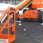 - A beautiful cherry tree being hoisted above the construction fence to be planted at another location on the property.