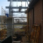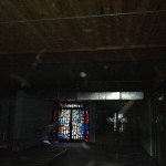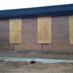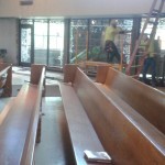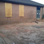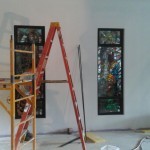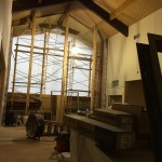 - The glass doors to the Church and the Chapel have been boarded up to protect them during construction.