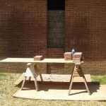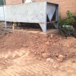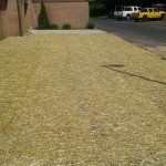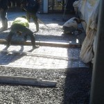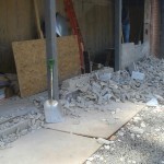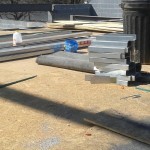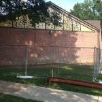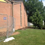 - The existing sidewalk must be removed to make way for the expanded Narthex. Also notice that the fencing, previously screening the HVAC units, has been carefully dismantled so that it can be reused in another location.