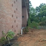 - Overgrown shrubbery was cleared to do some work on the foundation.
