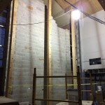 - The old exterior wall of the original church building is being removed to be replaced by solid glass, allowing natural light to enliven the new Parish Center.