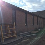 - The windows in the hall as well as the doors to the former Cranney Center have been removed.